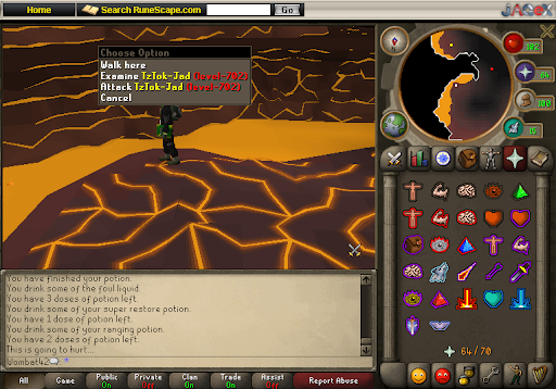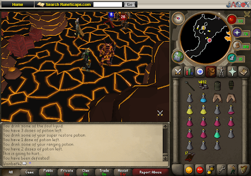 Of course, it's not really the end. I'm definitely going to try again, since I only used about 300 bolts and not too many potions. I can do a few more tries before I even have to start spending more money (of which I have plenty anyway, so no worries). I will get my fire cape, and when I do, it will be that much more of an achievement for me.